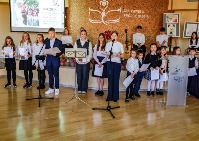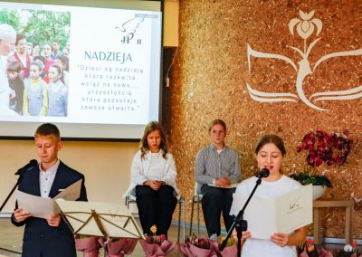 Podczas szkolnych obchodów rozstrzygnięto konkursy literacki i plastyczny. Uczniowie, prezentując swoje prace, ukazali osobiste spojrzenie na przesłanie Jana Pawła II oraz wartości, które głosił. Dzięki wsparciu Instytutu zwycięzcy otrzymali atrakcyjne nagrody, wyróżniające ich zaangażowanie, talent i kreatywność.