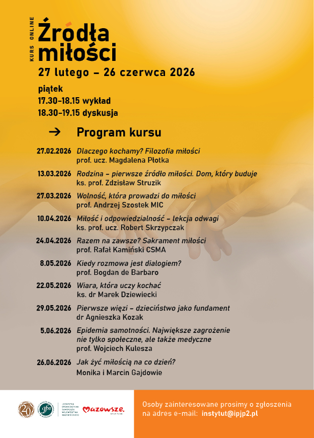 Instytut Papieża Jana Pawła II zaprasza na kurs online „Źródła miłości” – 10 spotkań w formie wykładów i dyskusji, które pomogą odkryć wielowymiarową naturę miłości.