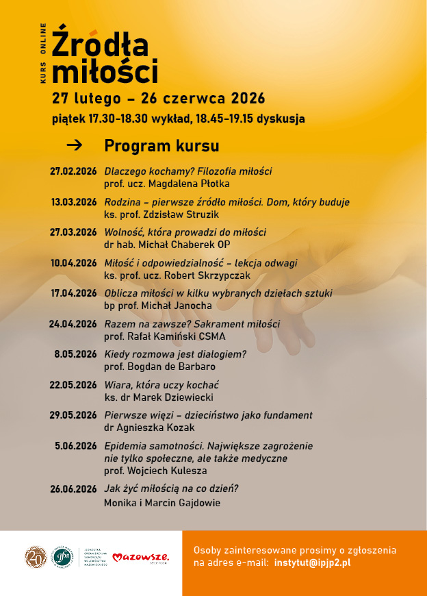 Tych wszystkich, którym nie udało się zapisać na kurs zapraszamy za tydzień do odsłuchania audio z wykładu na stronie: Program wychowawczy oparty na wartościach | Kurs „Źródła miłości” 2026