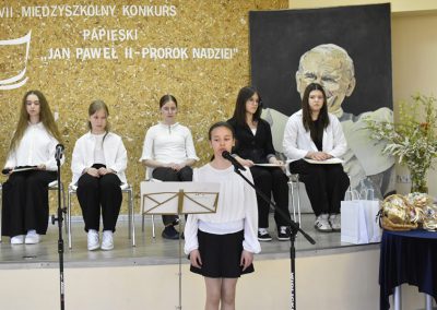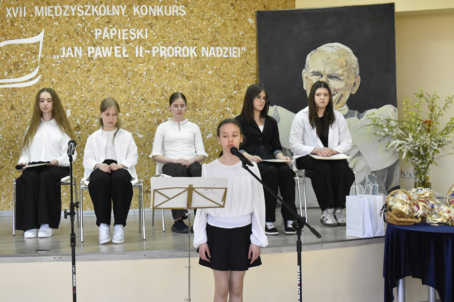 21 kwietnia 2026 roku w Szkole Podstawowej im. Jana Pawła II w Wołczynie odbyła się XVII edycja Międzyszkolnego Konkursu Papieskiego. Wydarzenie to, realizowane w ramach wieloletniej współpracy z Instytutem Papieża Jana Pawła II, przebiegało pod hasłem: „Jan Paweł II – Prorok Nadziei”. W tegorocznych zmaganiach wzięli udział uczniowie reprezentujący placówki oświatowe z Domaszowic, Wierzbicy Górnej, Praszki oraz Roszkowic. Konkurs stał się nie tylko sprawdzianem wiedzy o życiu i nauczaniu Papieża Polaka, ale także okazją do wspólnej refleksji nad wartościami, które pozostawił On kolejnym pokoleniom.
